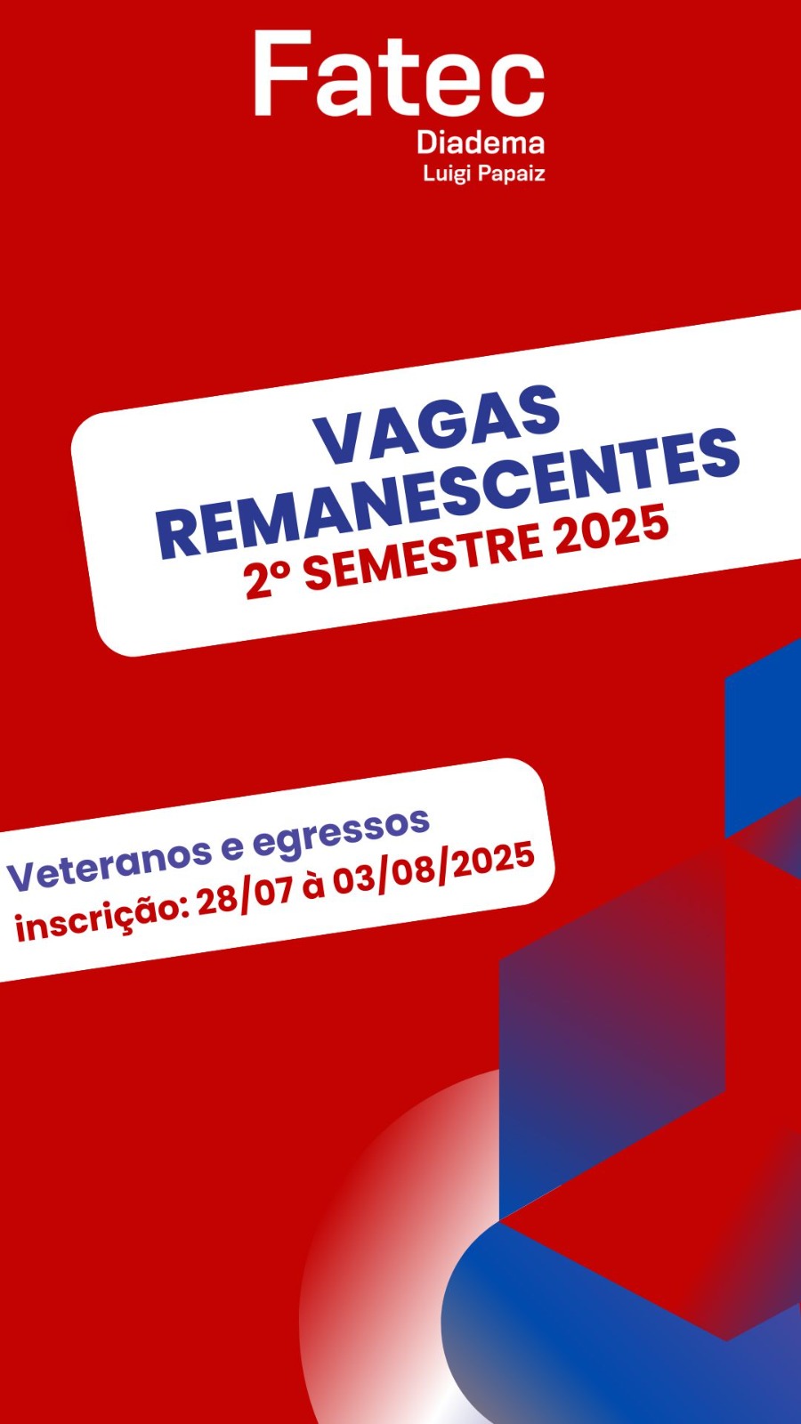 Resultado do Edital de Abertura de Vagas Remanescente nº 01/2025 Retificação do Edital de Abertura de Vagas Remanescente nº 01/2025 Edital de Abertura de Vagas Remanescente nº 01/2025